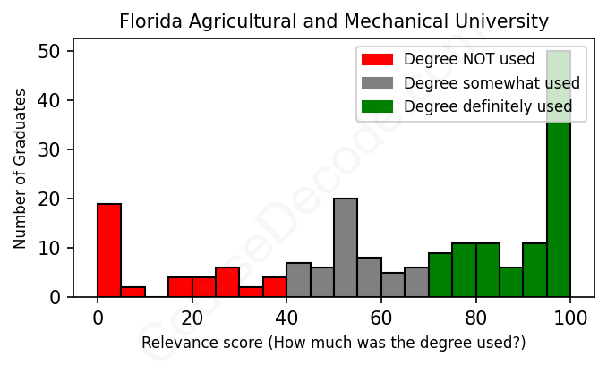 Of all the Florida Agricultural and Mechanical University graduates we've analyzed, here's how many have used (or NOT used) their degree in their career according to our analysis: