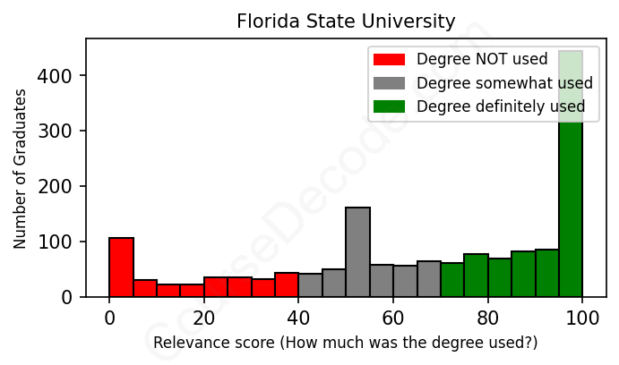 Of all the Florida State University graduates we've analyzed, here's how many have used (or NOT used) their degree in their career according to our analysis:
