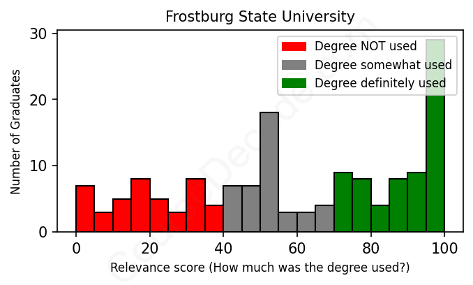 Of all the Frostburg State University graduates we've analyzed, here's how many have used (or NOT used) their degree in their career according to our analysis: