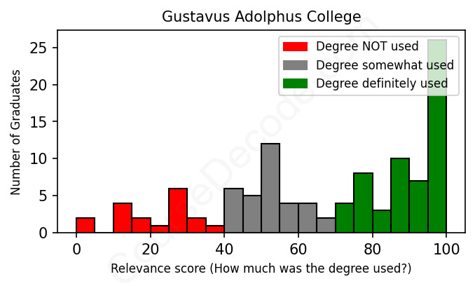 Of all the Gustavus Adolphus College graduates we've analyzed, here's how many have used (or NOT used) their degree in their career according to our analysis: