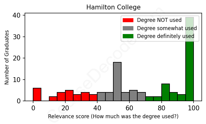 Of all the Hamilton College graduates we've analyzed, here's how many have used (or NOT used) their degree in their career according to our analysis: