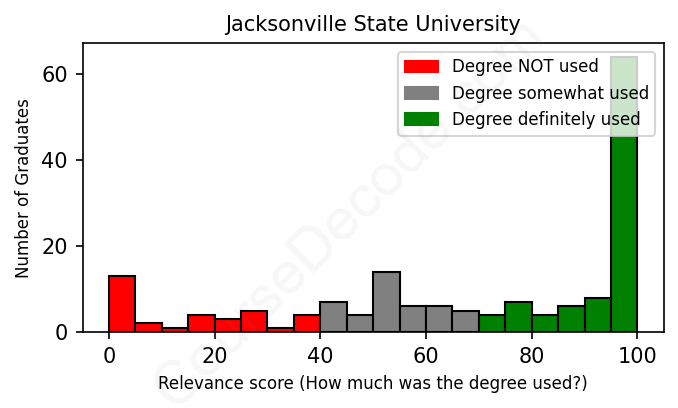 Of all the Jacksonville State University graduates we've analyzed, here's how many have used (or NOT used) their degree in their career according to our analysis: