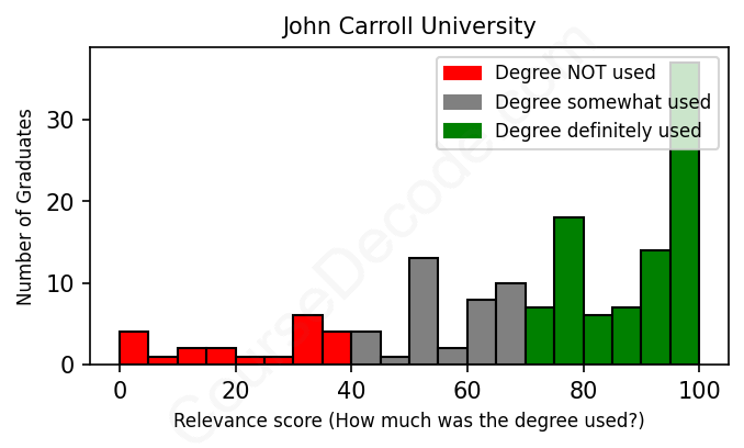 Of all the John Carroll University graduates we've analyzed, here's how many have used (or NOT used) their degree in their career according to our analysis: