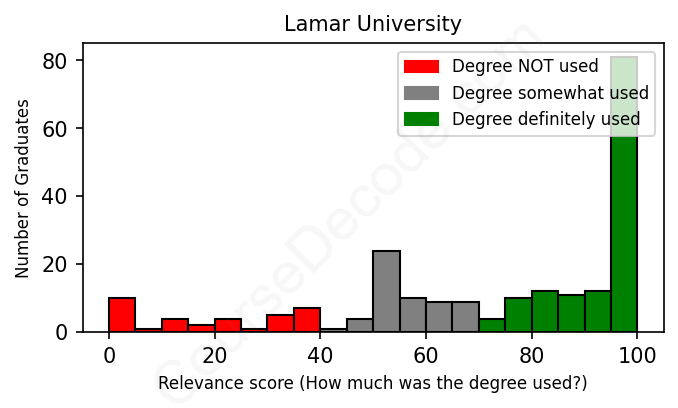 Of all the Lamar University graduates we've analyzed, here's how many have used (or NOT used) their degree in their career according to our analysis: