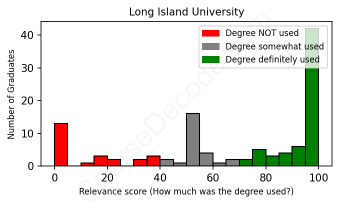 Of all the Long Island University graduates we've analyzed, here's how many have used (or NOT used) their degree in their career according to our analysis: