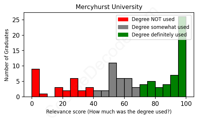 Of all the Mercyhurst University graduates we've analyzed, here's how many have used (or NOT used) their degree in their career according to our analysis: