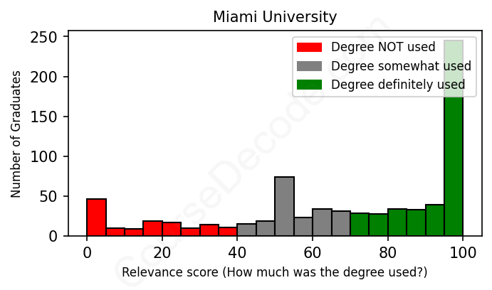 Of all the Miami University graduates we've analyzed, here's how many have used (or NOT used) their degree in their career according to our analysis: