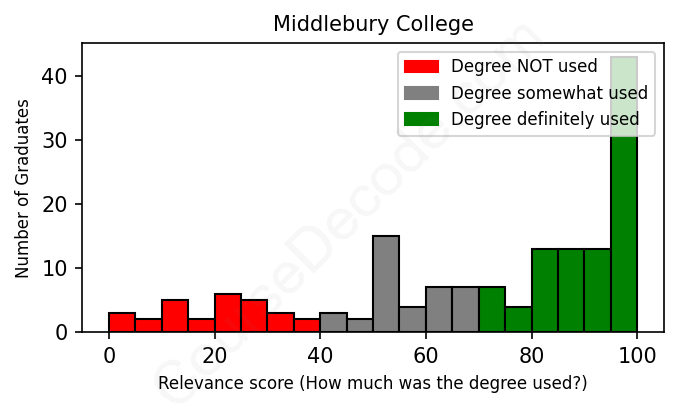 Of all the Middlebury College graduates we've analyzed, here's how many have used (or NOT used) their degree in their career according to our analysis: