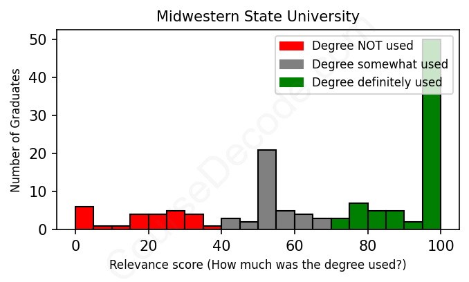 Of all the Midwestern State University graduates we've analyzed, here's how many have used (or NOT used) their degree in their career according to our analysis: