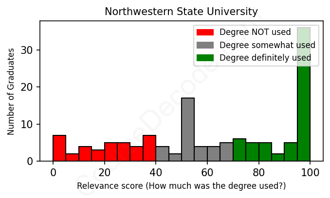 Of all the Northwestern State University graduates we've analyzed, here's how many have used (or NOT used) their degree in their career according to our analysis: