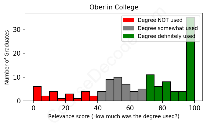Of all the Oberlin College graduates we've analyzed, here's how many have used (or NOT used) their degree in their career according to our analysis: