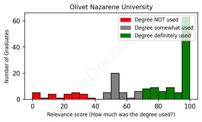 Of all the Olivet Nazarene University graduates we've analyzed, here's how many have used (or NOT used) their degree in their career according to our analysis: