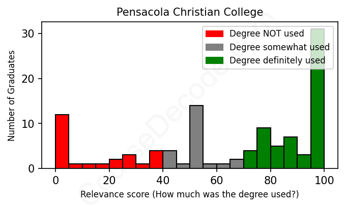 Of all the Pensacola Christian College graduates we've analyzed, here's how many have used (or NOT used) their degree in their career according to our analysis: