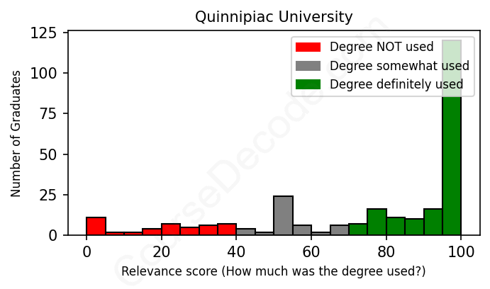 Of all the Quinnipiac University graduates we've analyzed, here's how many have used (or NOT used) their degree in their career according to our analysis: