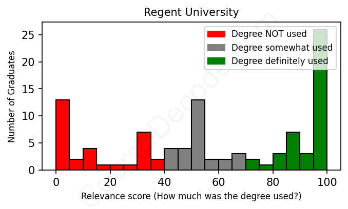 Of all the Regent University graduates we've analyzed, here's how many have used (or NOT used) their degree in their career according to our analysis:
