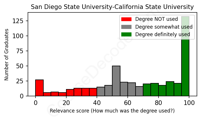 Of all the San Diego State University-California State University graduates we've analyzed, here's how many have used (or NOT used) their degree in their career according to our analysis:
