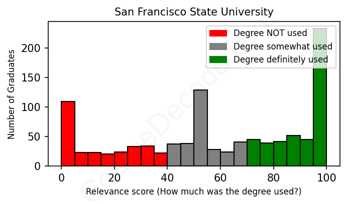 Of all the San Francisco State University graduates we've analyzed, here's how many have used (or NOT used) their degree in their career according to our analysis: