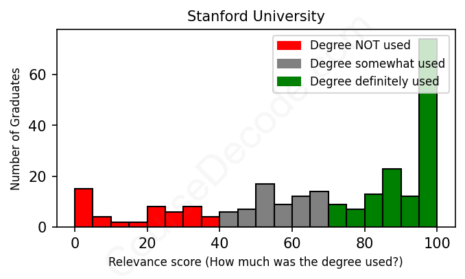 Of all the Stanford University graduates we've analyzed, here's how many have used (or NOT used) their degree in their career according to our analysis: