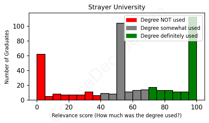 Of all the Strayer University graduates we've analyzed, here's how many have used (or NOT used) their degree in their career according to our analysis: