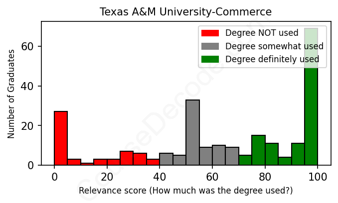 Of all the Texas A&M University-Commerce graduates we've analyzed, here's how many have used (or NOT used) their degree in their career according to our analysis: