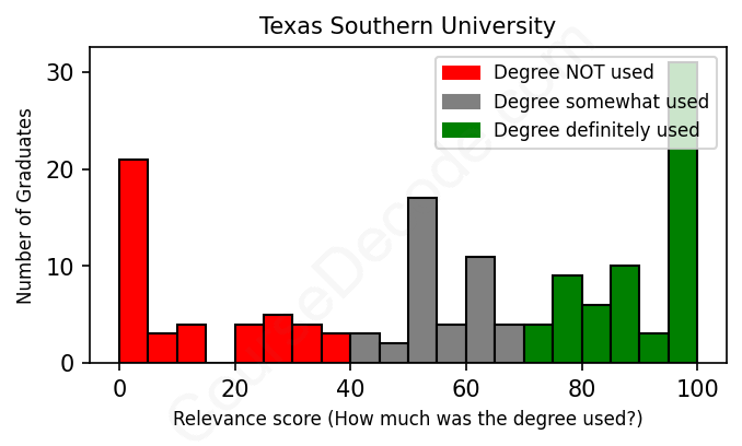 Of all the Texas Southern University graduates we've analyzed, here's how many have used (or NOT used) their degree in their career according to our analysis: