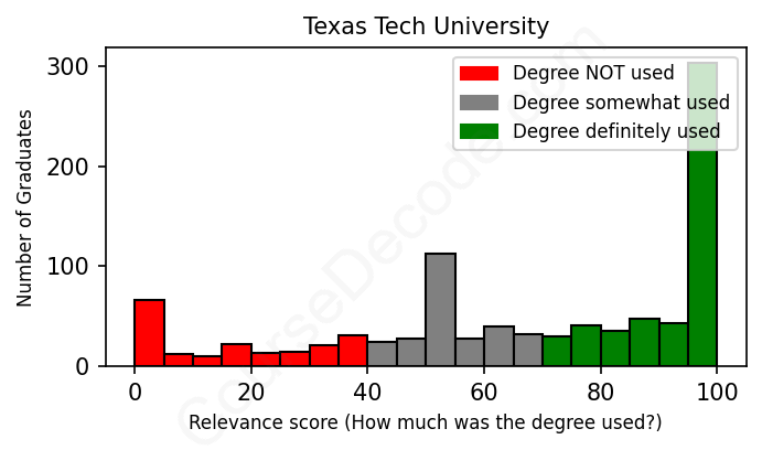 Of all the Texas Tech University graduates we've analyzed, here's how many have used (or NOT used) their degree in their career according to our analysis: