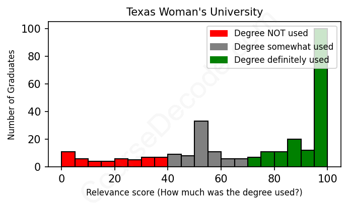 Of all the Texas Woman's University graduates we've analyzed, here's how many have used (or NOT used) their degree in their career according to our analysis: