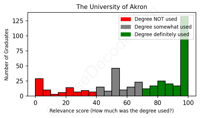 Of all the The University of Akron graduates we've analyzed, here's how many have used (or NOT used) their degree in their career according to our analysis: