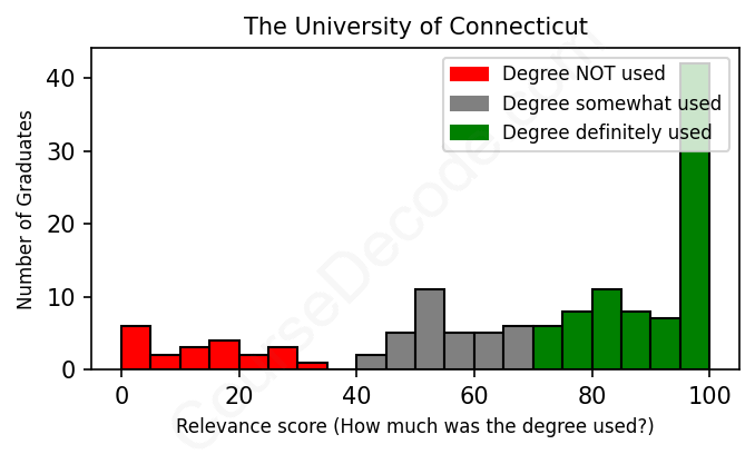 Of all the The University of Connecticut graduates we've analyzed, here's how many have used (or NOT used) their degree in their career according to our analysis: