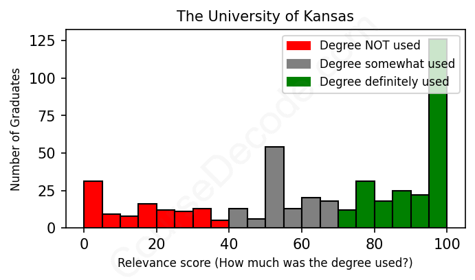 Of all the The University of Kansas graduates we've analyzed, here's how many have used (or NOT used) their degree in their career according to our analysis: