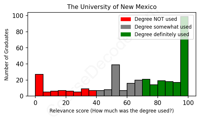 Of all the The University of New Mexico graduates we've analyzed, here's how many have used (or NOT used) their degree in their career according to our analysis: