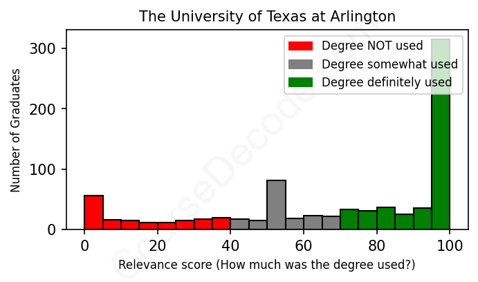 Of all the The University of Texas at Arlington graduates we've analyzed, here's how many have used (or NOT used) their degree in their career according to our analysis:
