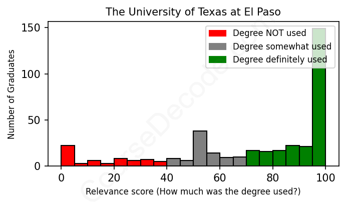 Of all the The University of Texas at El Paso graduates we've analyzed, here's how many have used (or NOT used) their degree in their career according to our analysis: