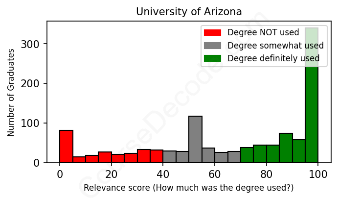 Of all the University of Arizona graduates we've analyzed, here's how many have used (or NOT used) their degree in their career according to our analysis: