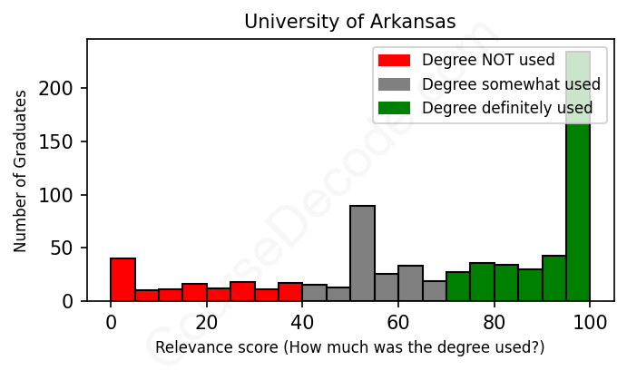 Of all the University of Arkansas graduates we've analyzed, here's how many have used (or NOT used) their degree in their career according to our analysis: