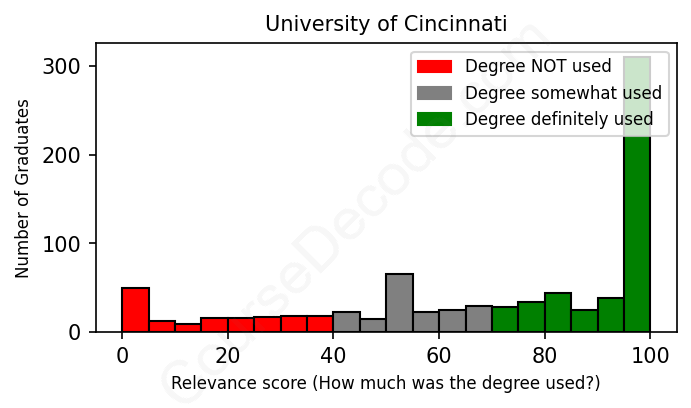 Of all the University of Cincinnati graduates we've analyzed, here's how many have used (or NOT used) their degree in their career according to our analysis: