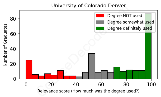 Of all the University of Colorado Denver graduates we've analyzed, here's how many have used (or NOT used) their degree in their career according to our analysis: