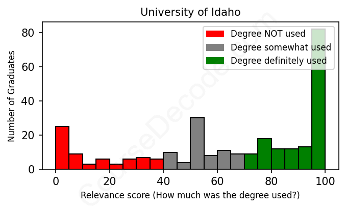 Of all the University of Idaho graduates we've analyzed, here's how many have used (or NOT used) their degree in their career according to our analysis: