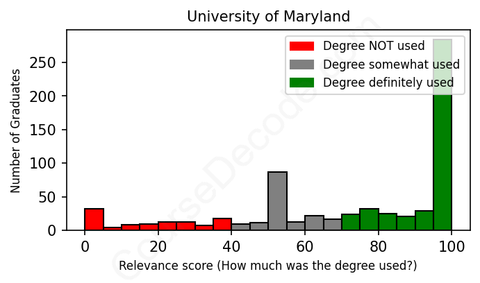 Of all the University of Maryland graduates we've analyzed, here's how many have used (or NOT used) their degree in their career according to our analysis: