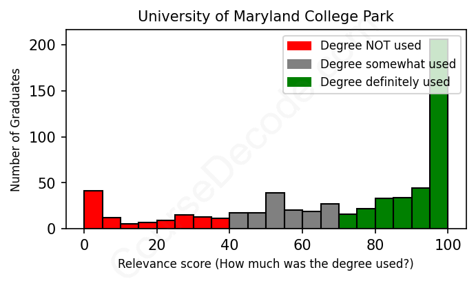 Of all the University of Maryland College Park graduates we've analyzed, here's how many have used (or NOT used) their degree in their career according to our analysis: