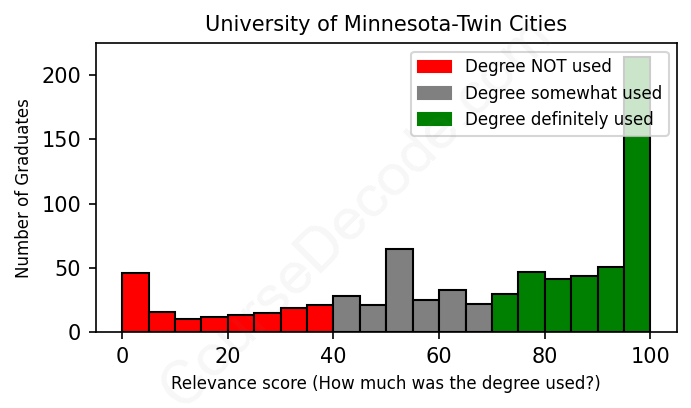 Of all the University of Minnesota-Twin Cities graduates we've analyzed, here's how many have used (or NOT used) their degree in their career according to our analysis: