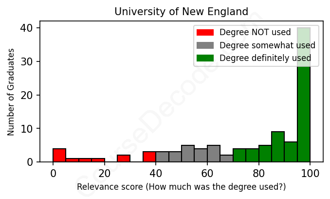 Of all the University of New England graduates we've analyzed, here's how many have used (or NOT used) their degree in their career according to our analysis: