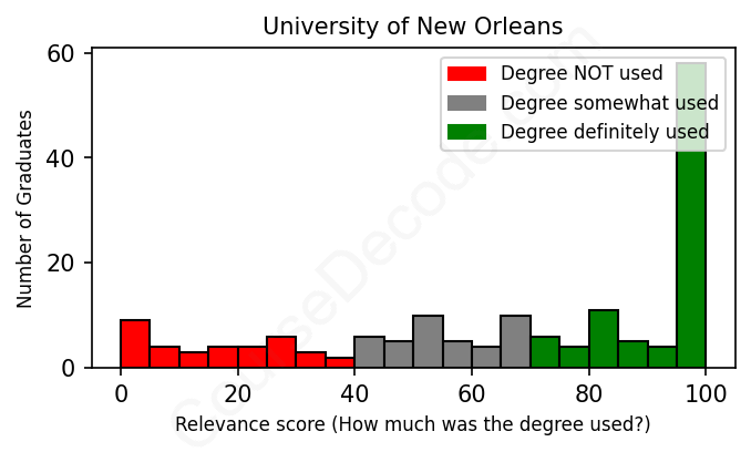 Of all the University of New Orleans graduates we've analyzed, here's how many have used (or NOT used) their degree in their career according to our analysis: