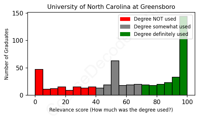 Of all the University of North Carolina at Greensboro graduates we've analyzed, here's how many have used (or NOT used) their degree in their career according to our analysis: