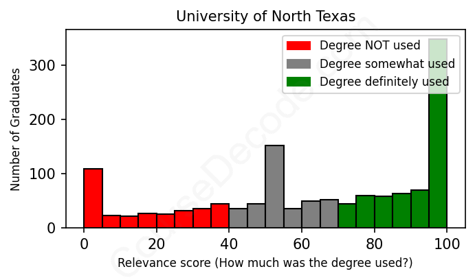 Of all the University of North Texas graduates we've analyzed, here's how many have used (or NOT used) their degree in their career according to our analysis: