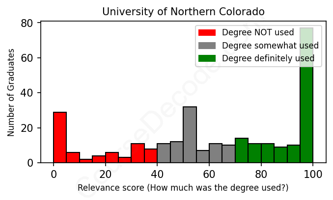 Of all the University of Northern Colorado graduates we've analyzed, here's how many have used (or NOT used) their degree in their career according to our analysis: