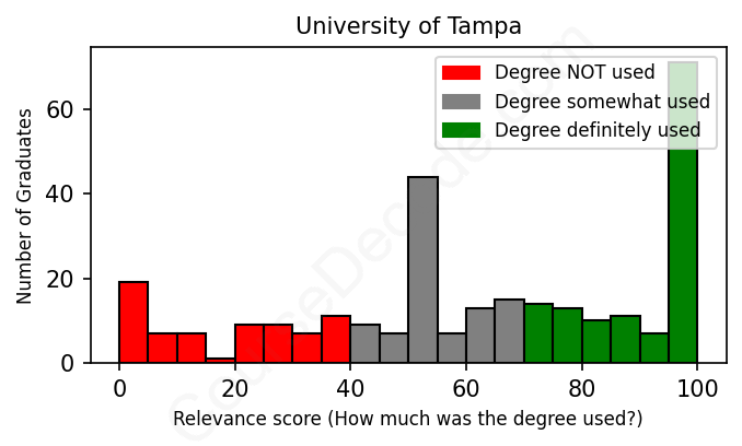 Of all the University of Tampa graduates we've analyzed, here's how many have used (or NOT used) their degree in their career according to our analysis: