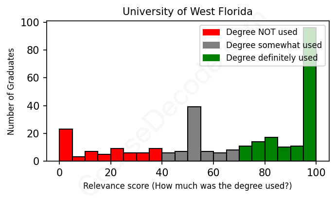 Of all the University of West Florida graduates we've analyzed, here's how many have used (or NOT used) their degree in their career according to our analysis: