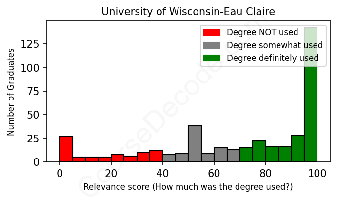 Of all the University of Wisconsin-Eau Claire graduates we've analyzed, here's how many have used (or NOT used) their degree in their career according to our analysis: