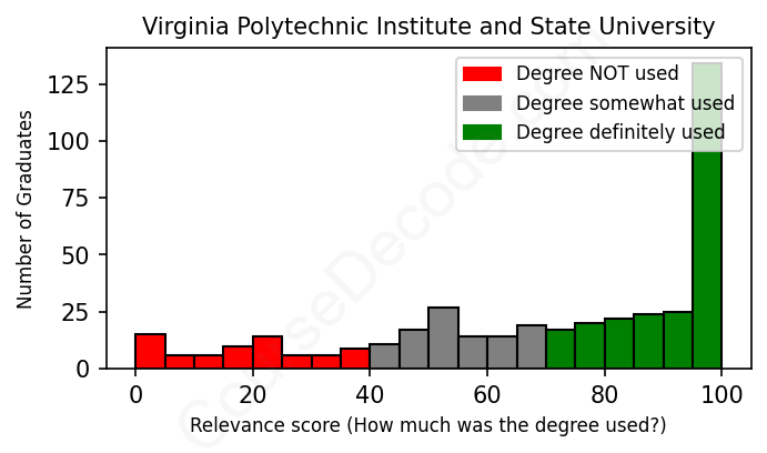 Of all the Virginia Polytechnic Institute and State University graduates we've analyzed, here's how many have used (or NOT used) their degree in their career according to our analysis: